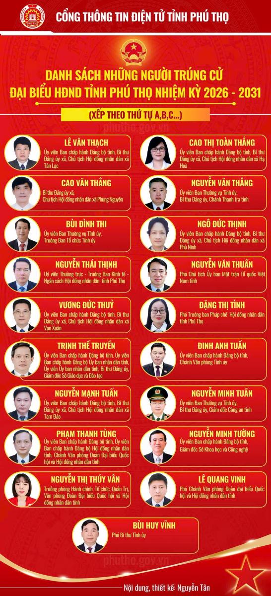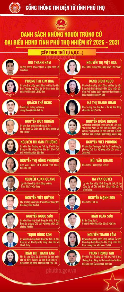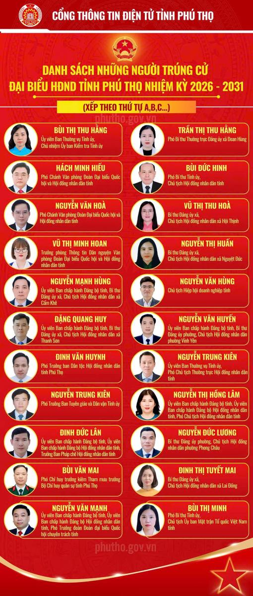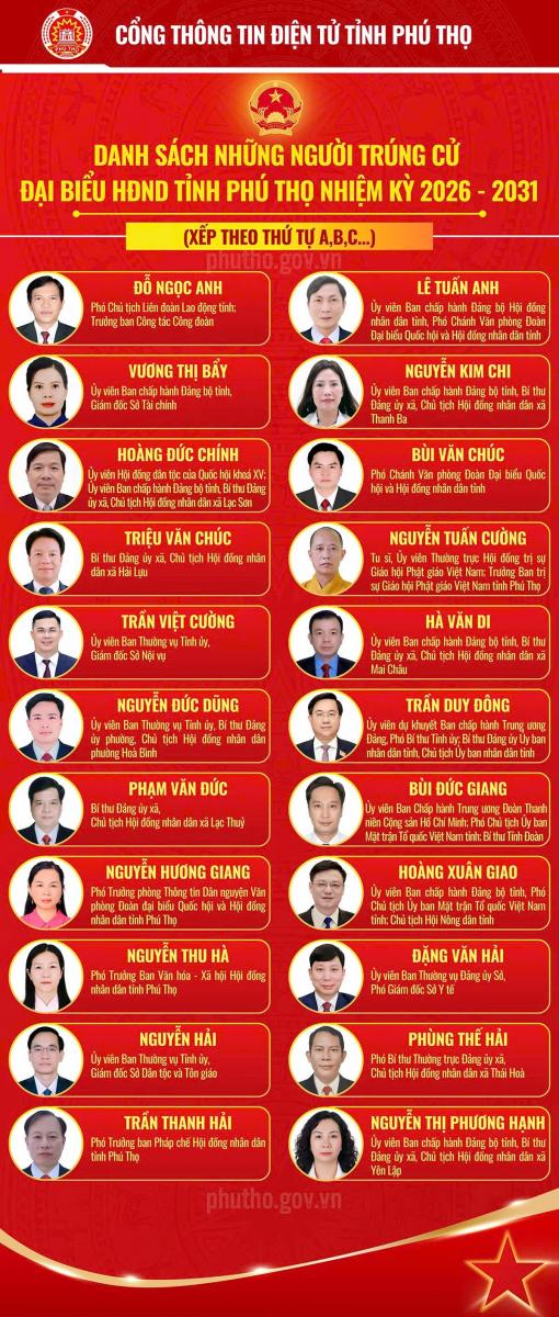 Danh sách những người trúng cử Đại biểu Hội đồng nhân dân tỉnh Phú Thọ nhiệm kỳ 2026 - 2031